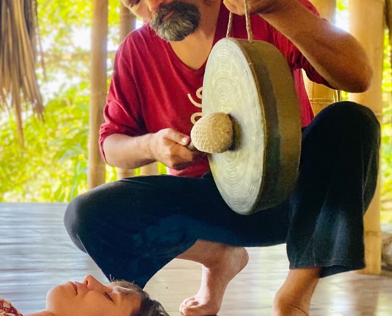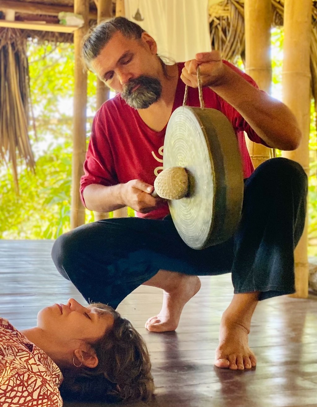 Yoga Nidra or yogic sleep is a practice of deep relaxation, that involves guided meditation to induce a state of relaxation between waking and sleeping. During the practice, accumulated tensions of the body and mind are released. The session ends with the beautiful frequency of the Tibetan and Mexican gong.
