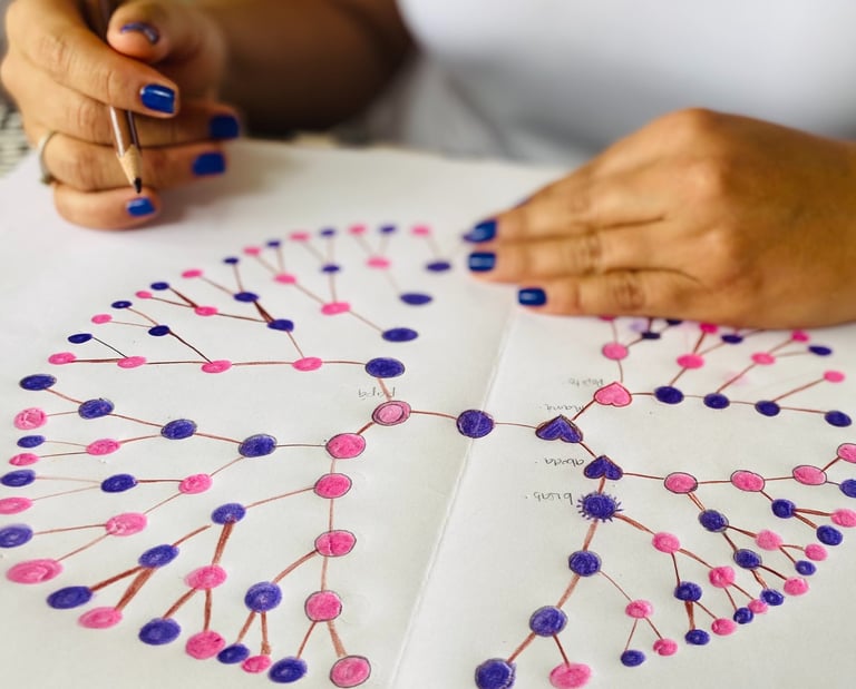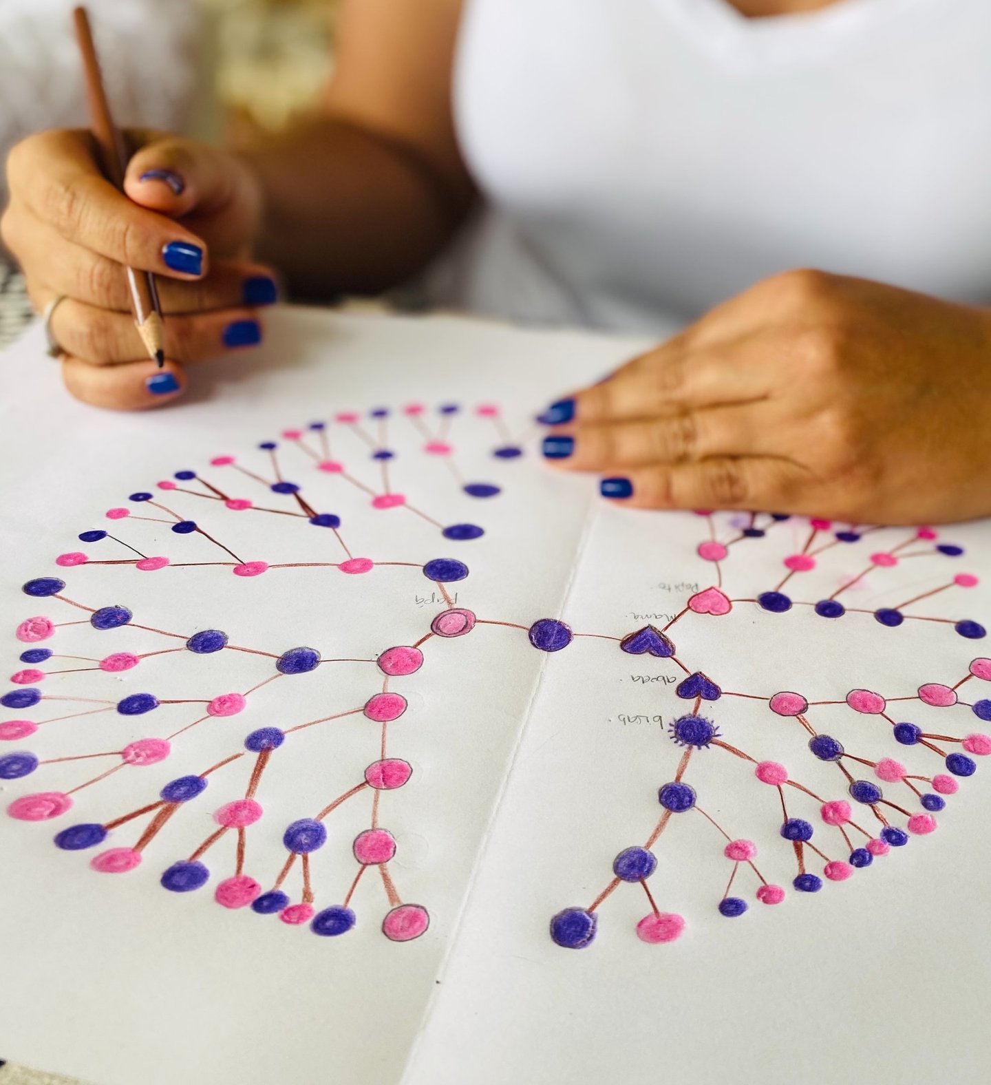 Este taller te permite a reconectar con tus 126 ancestros, así no los hayas conocido y no sepas sus nombres. Detras de los nombres y vínculos familiares, encontrarás historias que pueden estar afectando tu vida. Reconocerás mucho mejor a ti mismo(a) y tomarás consciencia sobre la repitición de patrones, desequilibrios y blo- queos en tu vida. Al traer al nivel consciente tus memorias transgeneracionales, podras a trans- formarlas y liberarlas de tu inconsciente. Y así podrás honrar a tus ancestros, recibir sus bendi-ciones y recordar los dones y talentos que vienen de ellos y habitan dentro de ti.