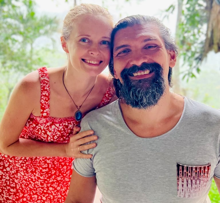 Katya Goldina y Alex Amarnatkh son facilitadores holísticos, creadores del proceso “Sana tus Raíces”, psicólogos transpersonales y fundadores del centro de desarrollo integral Casa Yoga Minca en Sierra Nevada de Santa Marta, Colombia; son pareja y padres de dos hijos nacidos en casa.