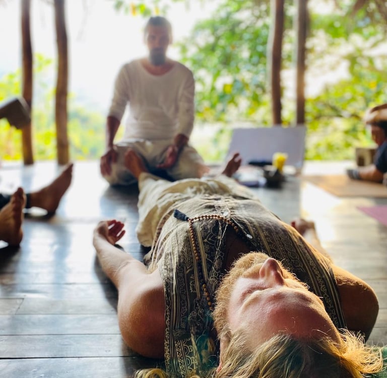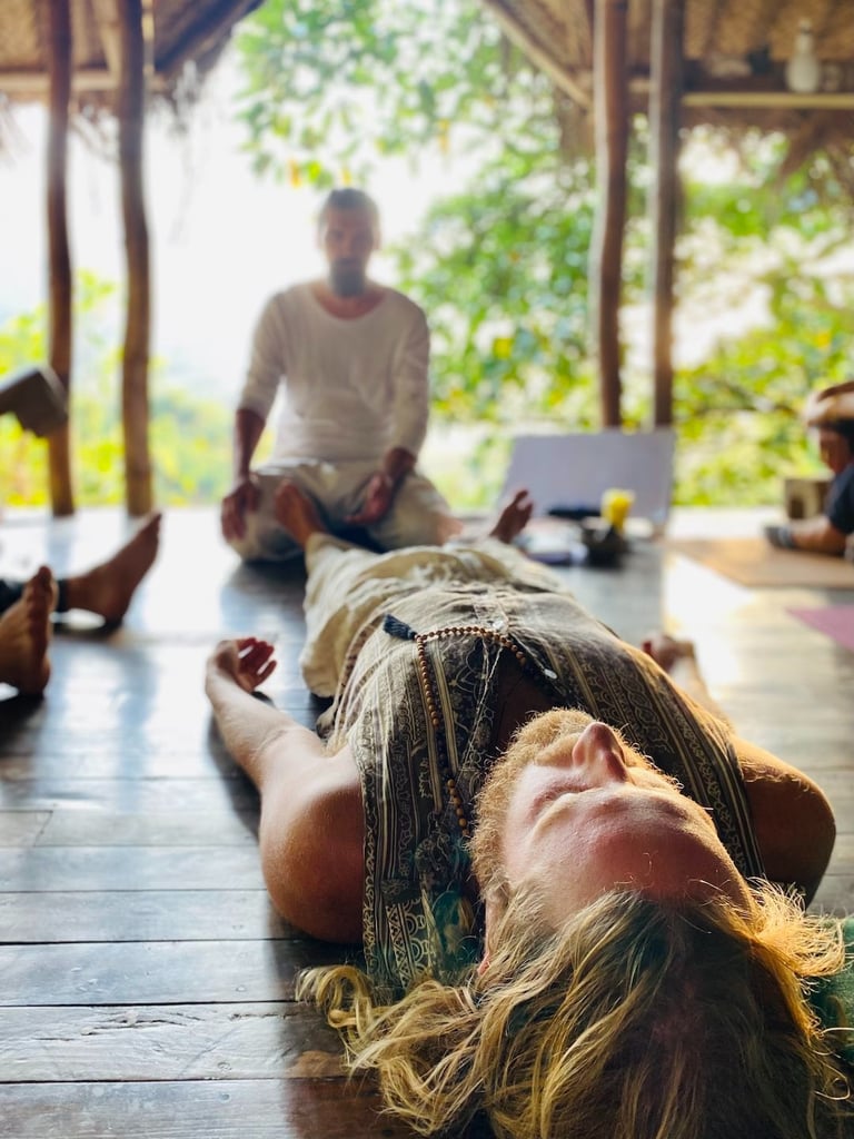 Мы приглашаем вас на наши утренник классы йоги. Класс проходит на нашей террасе построенной из натуральных материалов, деревянным полом и видом на тропический лес. В 7:30 am - хатха йога, пранаяма или медитация. Добро пожаловать начинающим и практикующим всех уровней.